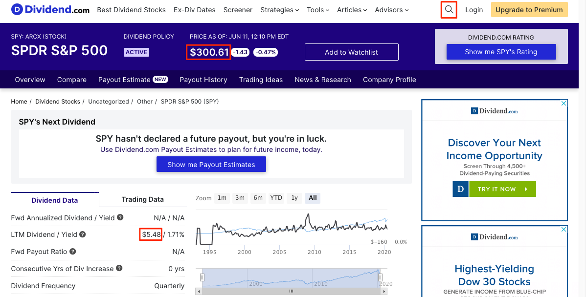 빨간색 배경을 가진 셀만 입력하면 되는데, 개별종목의 주가와 배당 정보는 dividend.com에서 확인 가능하다.