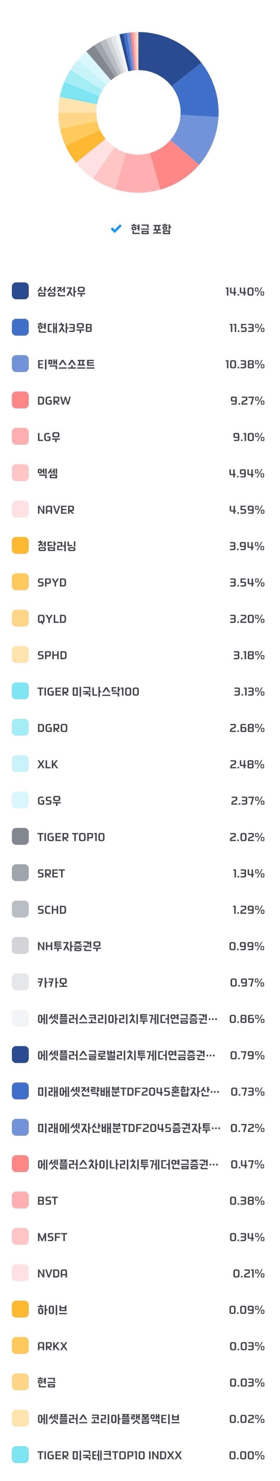 - '21년에 집을 구입했고 앞으로 큰 돈이 들어갈 일이 없어서, 이미 투입된 자금과 매달 유입되는 월급, 배당금은 시간표가 없는 돈이다.