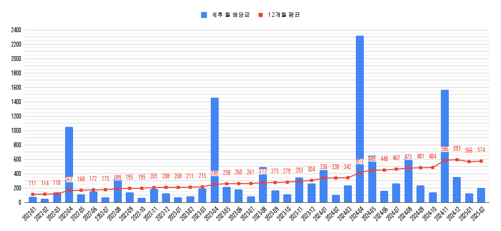 2025년 4월 배당기록 (세후 2,194만원, 평균 564만원) (2) | 2025.05.01 |