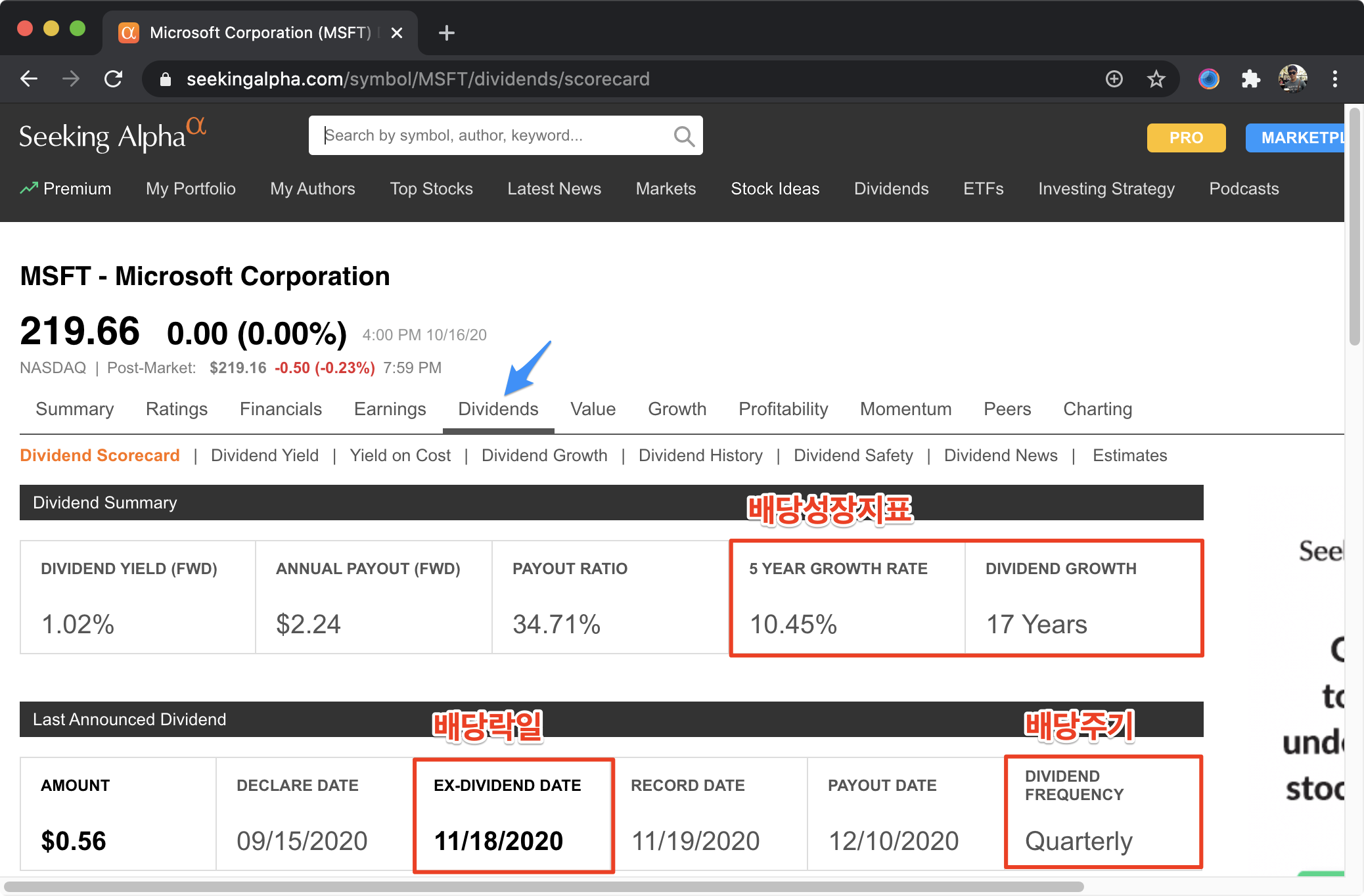 지금까지 Seeking Alpha를 통해 미국 주식, ETF의 배당 관련 정보를 파악하는 방법을 알아보았다.