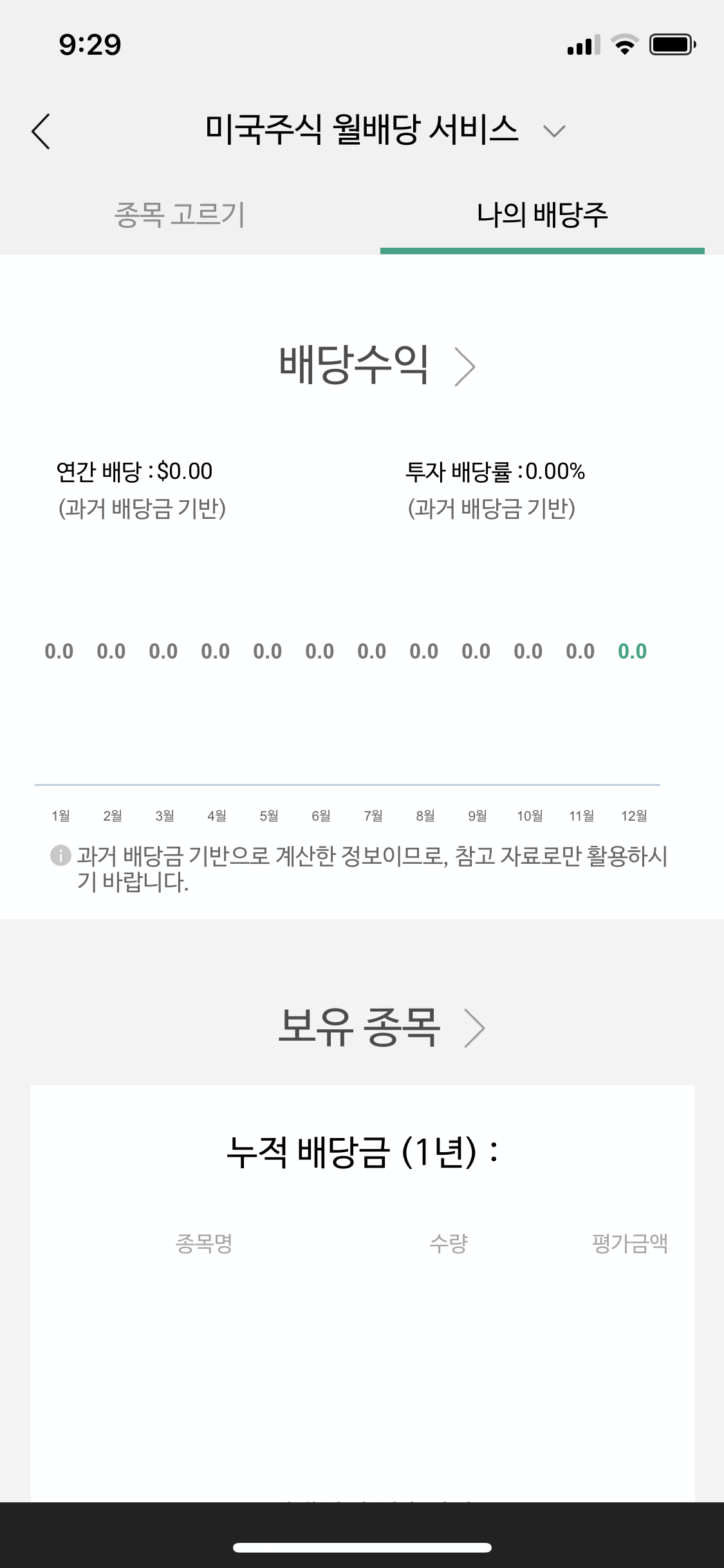 계좌에 애플, 마이크로소프트 등 배당을 주는 주식이 있었는데도 불구하고, 나의 배당주 탭에서는 인식이 되지 않았다. 아마도 미국주식 월배당 서비스에서 매수한 종목만 인식이 되는 것 같다. 이 또한 아쉬운 부분.