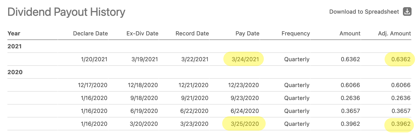- QYLD의 경우 이번 달에 배당금을 두 번 수령하였다.