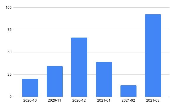 2021년 3월에는 미국 월배당 ETF 3종, 분기배당 ETF 3종으로부터 세후 92.3만원의 배당금을 수령하였다.