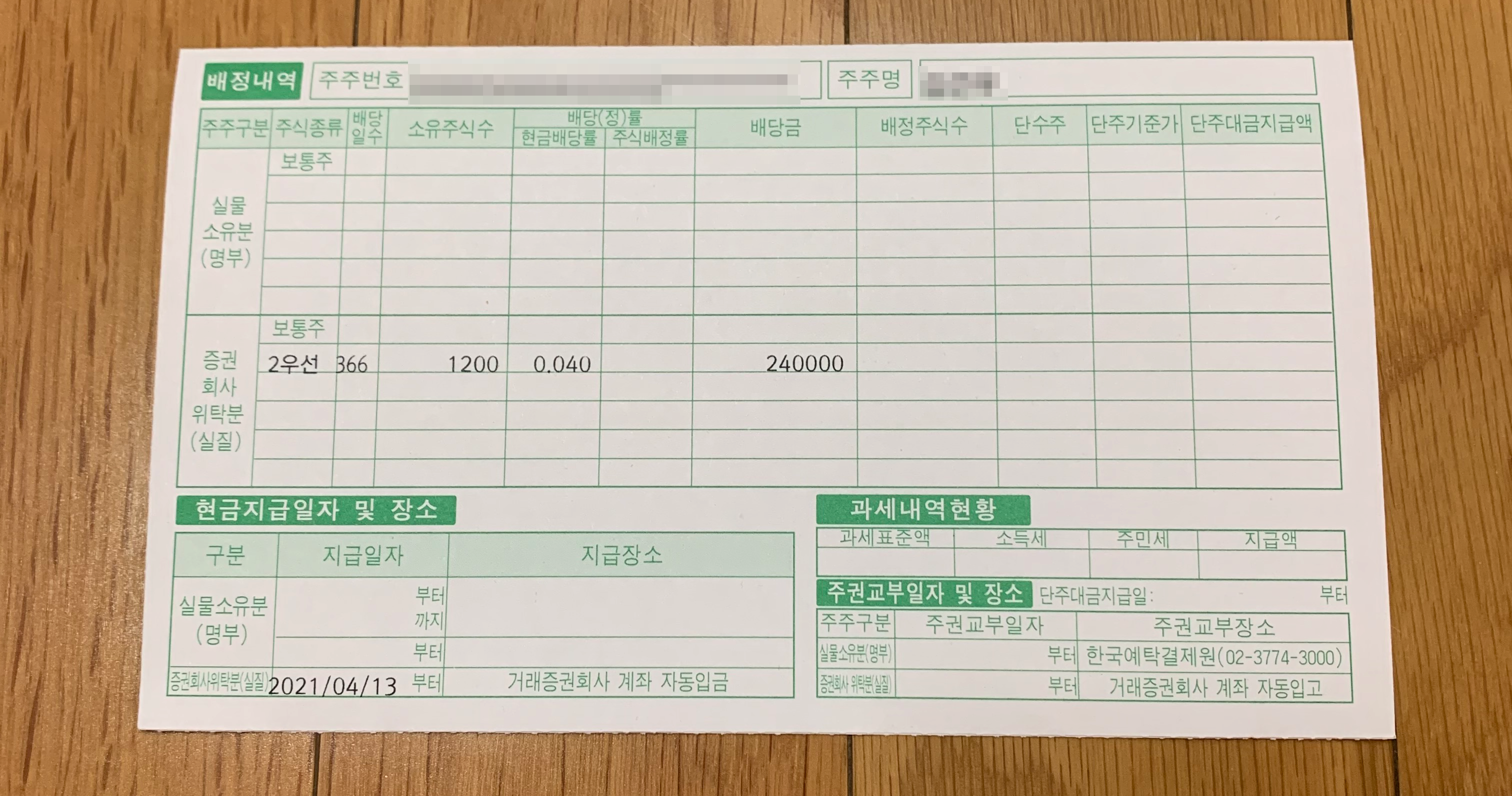 퇴근길에 우편함을 열어보니 반가운 우편물이 도착해 있었다. 나, 아내, 딸 모두에게 동시에 온 것을 보고, 셋 다 보유하고 있는 주식의 배당금 통지서인 것을 알 수 있었다.